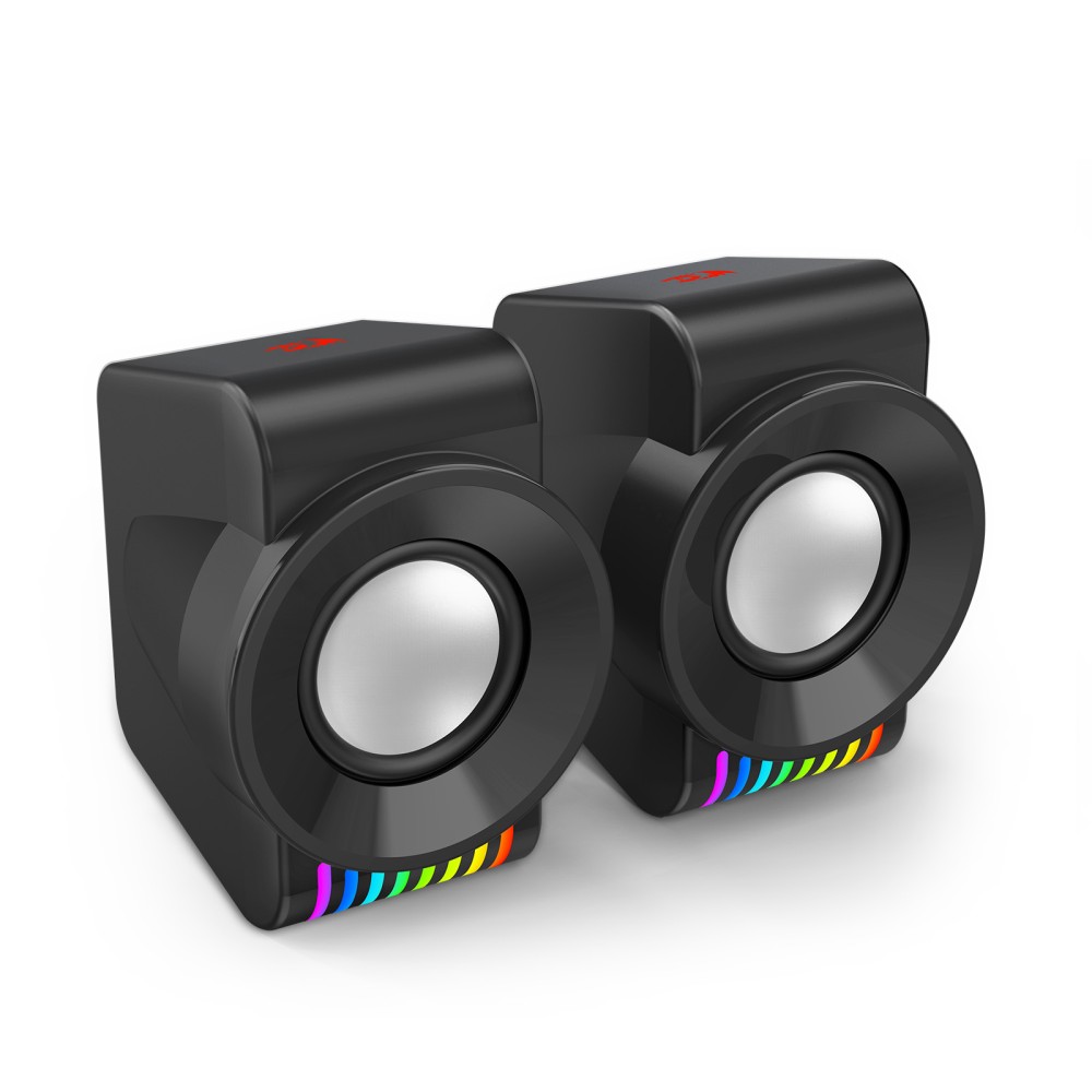 - Conjunto de caixas de som Redragon 2.0 ideal para uso em jogos, filmes ou músicas.