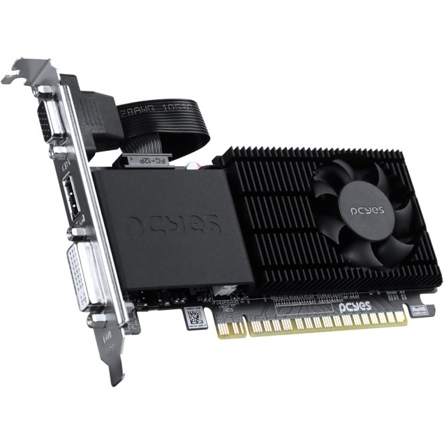 A PCYES GeForce G210 Projeto Edge é a placa de vídeo ideal para quem precisa de desempenho básico aliado a confiabilidade e baixo consumo de energia. Com 1GB de memória DDR3 e interface de 64 bits, ela oferece suporte para aplicações multimídia, navegação, vídeos em alta resolução e programas de uso cotidiano.