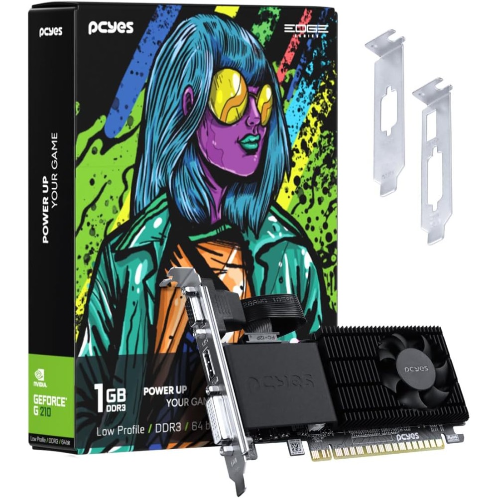 Compacta, econômica e confiável. A NVIDIA G210 1GB DDR3 da PCYES é ideal para PCs básicos, uso multimídia, escritório e gabinetes low profile.