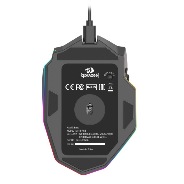 Nome: Mouse Gamer Redragon Rind RGB Preto PAW3333 16000 DPI 10 Botões Programáveis M813-RGB