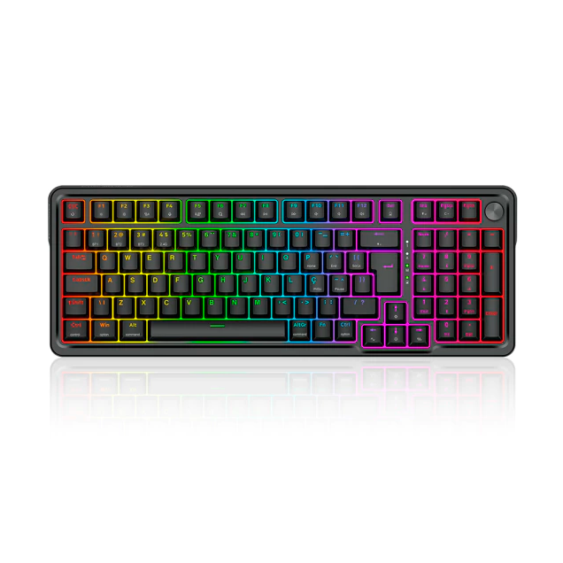 | Características: | - Formato 1800 Compact para os usuários que buscam algo menor mas sem abrir mão do teclado numérico - Roda de volume integrada para ajustes rápidos e práticos - Estrutura por suspensão em gasket mount proporcionando uma digitação macia e suave - Iluminação RGB trazendo mais brilho para o setup - Conectividade tri-mode via USB Tipo-C, USB 2.4GHz ou bluetooth - PCB hotswap de 5 pinos para a personalização dos switches - Layout ABNT2 feito especialmente para o mercado brasileiro - Keycaps feitas com o método doubleshot injection resultando em legendas duradouras |