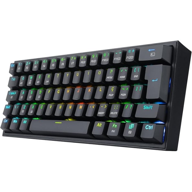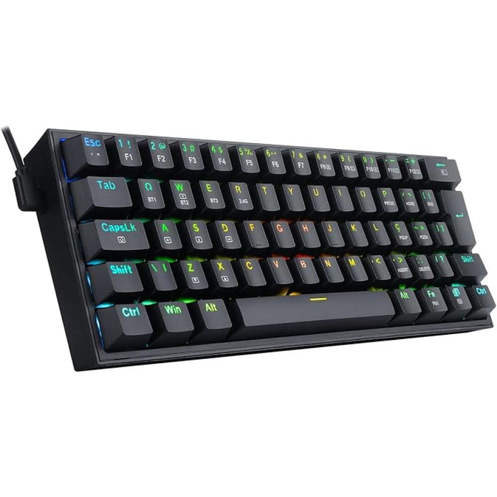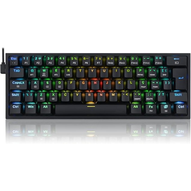 Redragon Fizz Pro, RGB, Wireless, Switch Azul - K616-RGB-B (PT-BLUE) - Preto: Teclado Mecânico Gamer sem fio com iluminação RGB e Switch Azul para resposta tátil precisa.
